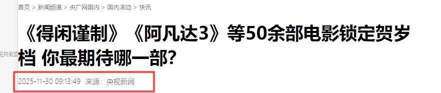 央视新闻2025-11-30《《得闲谨制》《阿凡达3》等50余部电影锁定贺岁档 你最期待哪一部?》