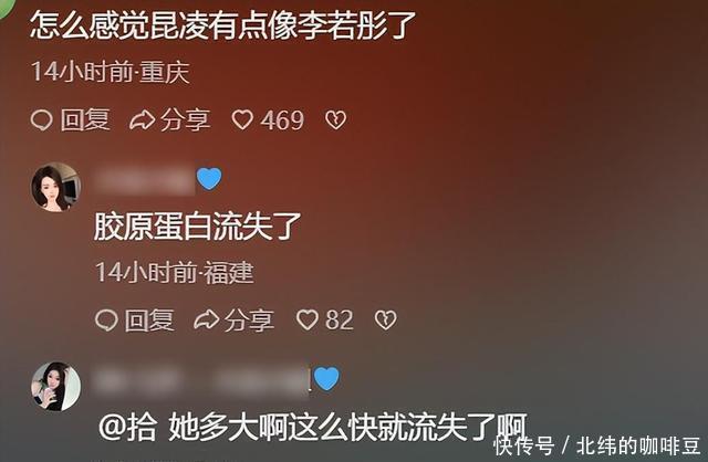 李若彤和昆凌之间相差了整整27岁,当然李若彤也是大美女,这些年保养得也很不错,但拿来对比昆凌,实在算不上夸奖,昆凌的生图状态确实不比从前了,老了许多。